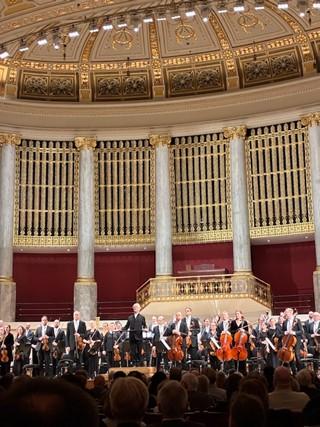 Pro Filharmonian 23 hengen joukko oli mukana HKO:n konsertissa Wienin Konzerthausissa 25.11.2025. Ohjelmassa oli Outi Tarkiaisen Jään lauluja, Stravinskin viulukonsertto ja Sibeliuksen 1. sinfonia. Ylimääräisenä orkesteri soitti Sibeliuksen Bardin ja kun suosionosoitukset vain jatkuivat vielä lopuksi Finlandian. Meillä Suomen liput liehuivat merkkinä siitä, että mukana taas oltiin. Backstagella tapasimme vielä kapellimestari Jukka-Pekka Sarasteen ja illan solistin Pekka Kuusiston.
